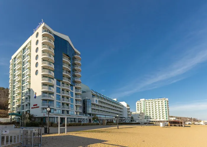 Beachfront Pool&Sea View Stduio in Hotel Berlin Varna omvat een privézwembad en een terras en ligt in de wijk Golden Sands Beachfront, binnen 15 minuten te voet van Mini Golf Course Golden Sands. Er is wifi voor zowel zakenreizigers als vakantiegangers.